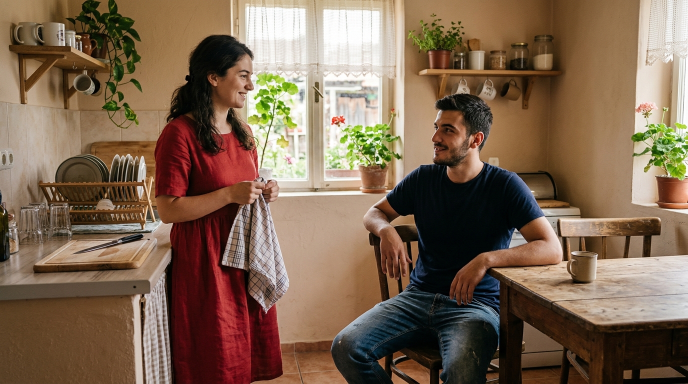 Por atë mbrëmje, ajri në kuzhinë dukej i rënduar. Arjana nuk lëvizi drejt sobës. Qëndroi pranë lavamanit, e qetë, me sytë e ngulur te burri përballë saj.