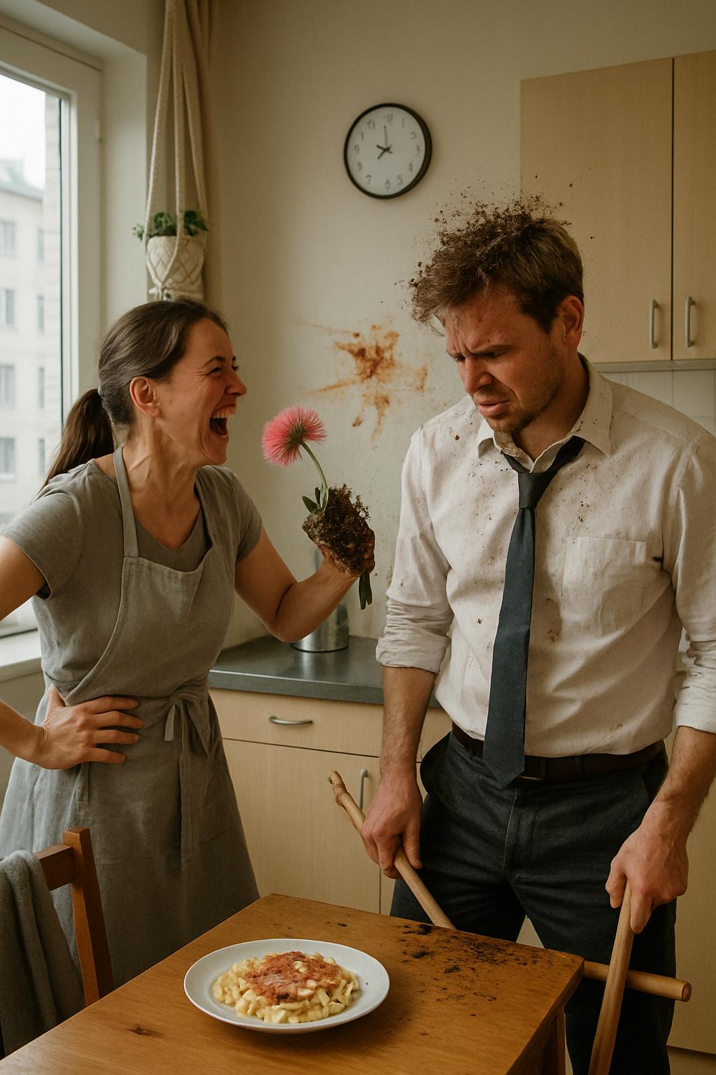 — Arben Plaku, por kjo s’është arsye të fluturosh pjatën në mur! — bërtiti Dafina Molla. — Tani merr fshesën dhe pastro gjithçka që bëre!