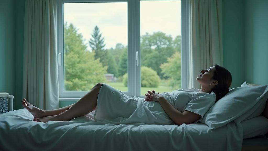 Fjolla Osmani qëndronte shtrirë përmbys mbi batanije, me trupin e zgjatur dhe këmbët e kryqëzuara lehtë. Duart i kishte vendosur mbi bark, me gishtat e ndërthurur fort, sikur të donte të mbante diçka që po i rrëshqiste. Vështrimi i saj ishte ngulur te dritarja: një puhizë e butë tundte degët e pemëve, ndërsa në qiellin e kaltër lëviznin ngadalë re të bardha, si tufëza leshi.