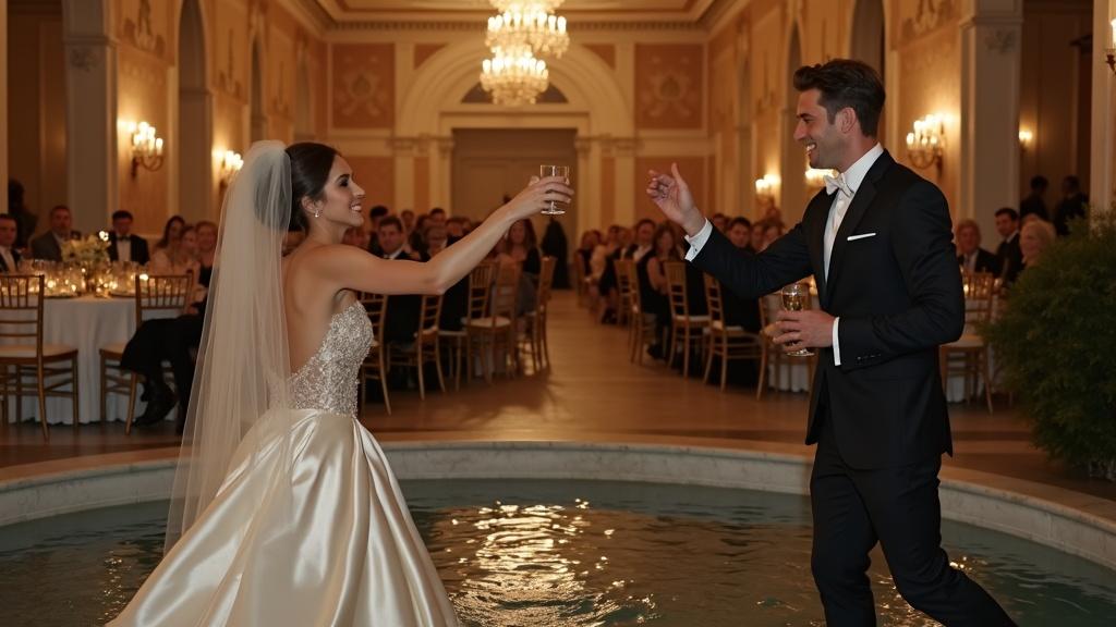 Gjatë darkës gjithçka rridhte pa asnjë njollë. Gotat ngriheshin për dolli, miqtë qeshnin, dhe unë isha e bindur se po jetoja ditën më të bukur të jetës sime. Më pas, në mes të vallëzimit, Marseli më pëshpëriti se duhej të bënim “diçka argëtuese për fotografitë”. Më kapi nga dora dhe më çoi drejt shatërvanit; mendova se kërkonte një çast romantik, një kujtim të ëmbël. Por ndodhi diçka që do të më mbetej e gdhendur përgjithmonë.