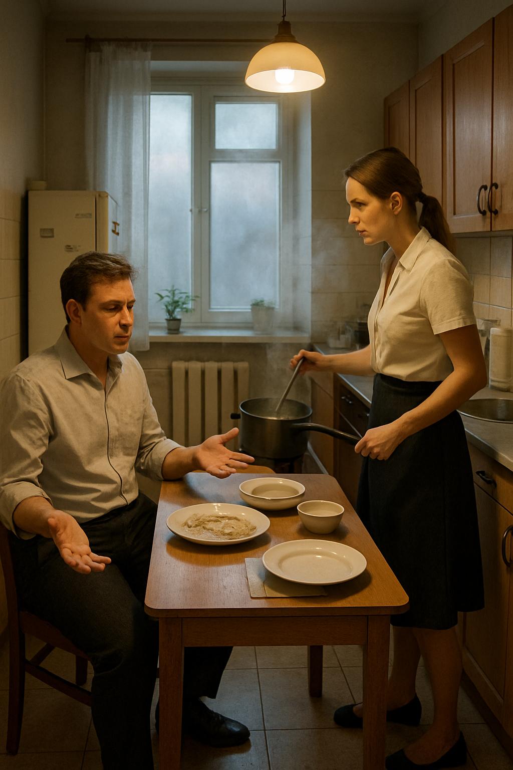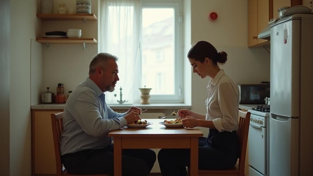 Ajo kthehej me vrap nga puna, përgatiste me nxitim darkën dhe ia shtronte. Në fillim ai hante pa fjalë, por durimi nuk i zgjati shumë.