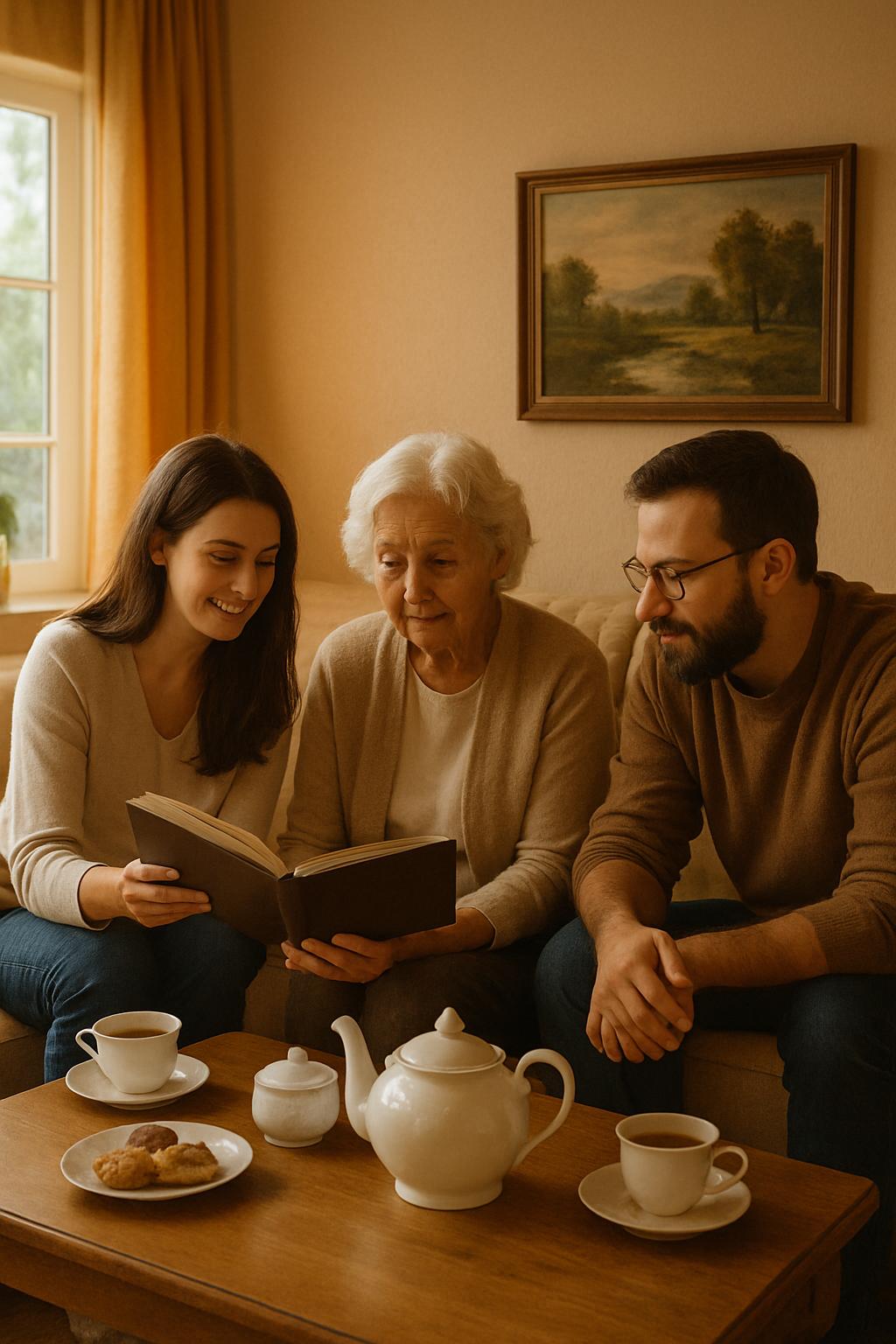 Vjosa parkoi pranë pallatit, mori dosjen dhe u ngjit në katin e pestë. Çelësi u rrotullua në bravë, dera u hap. Nga salloni vinin zëra — Gentiani dhe Marsela. Vjosa hoqi këpucët, vari xhaketën në varëse dhe shkoi në sallon.