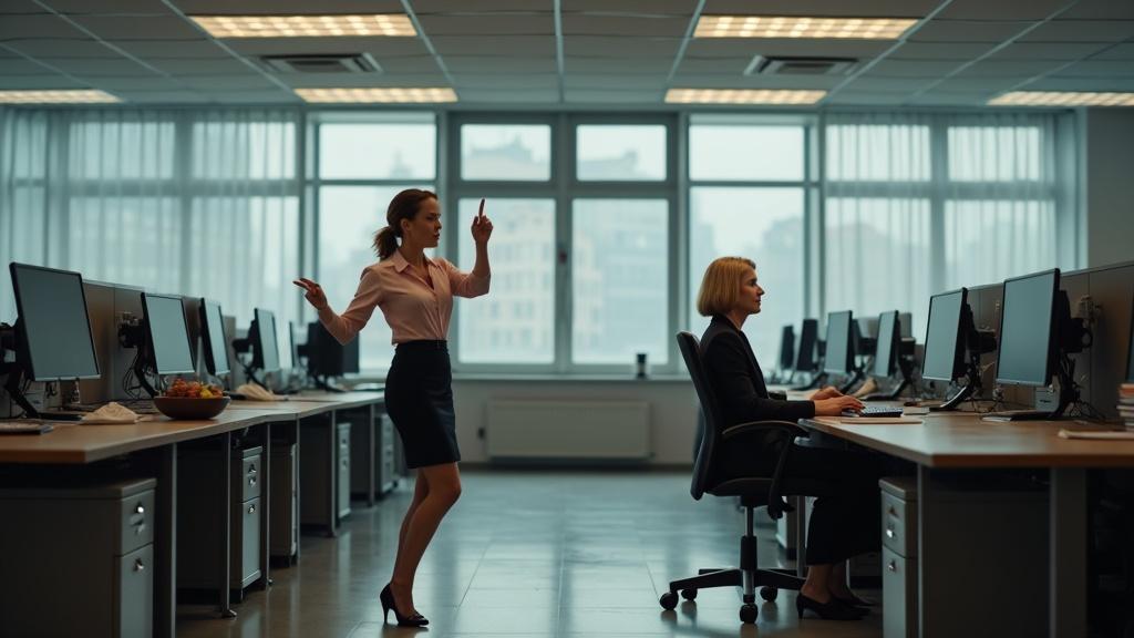 Të dy shefat u futën në zyrë për dorëzimin e detyrave. Gjergji u zhduk në dhomën e serverëve. Në open space mbetën vetëm gratë.