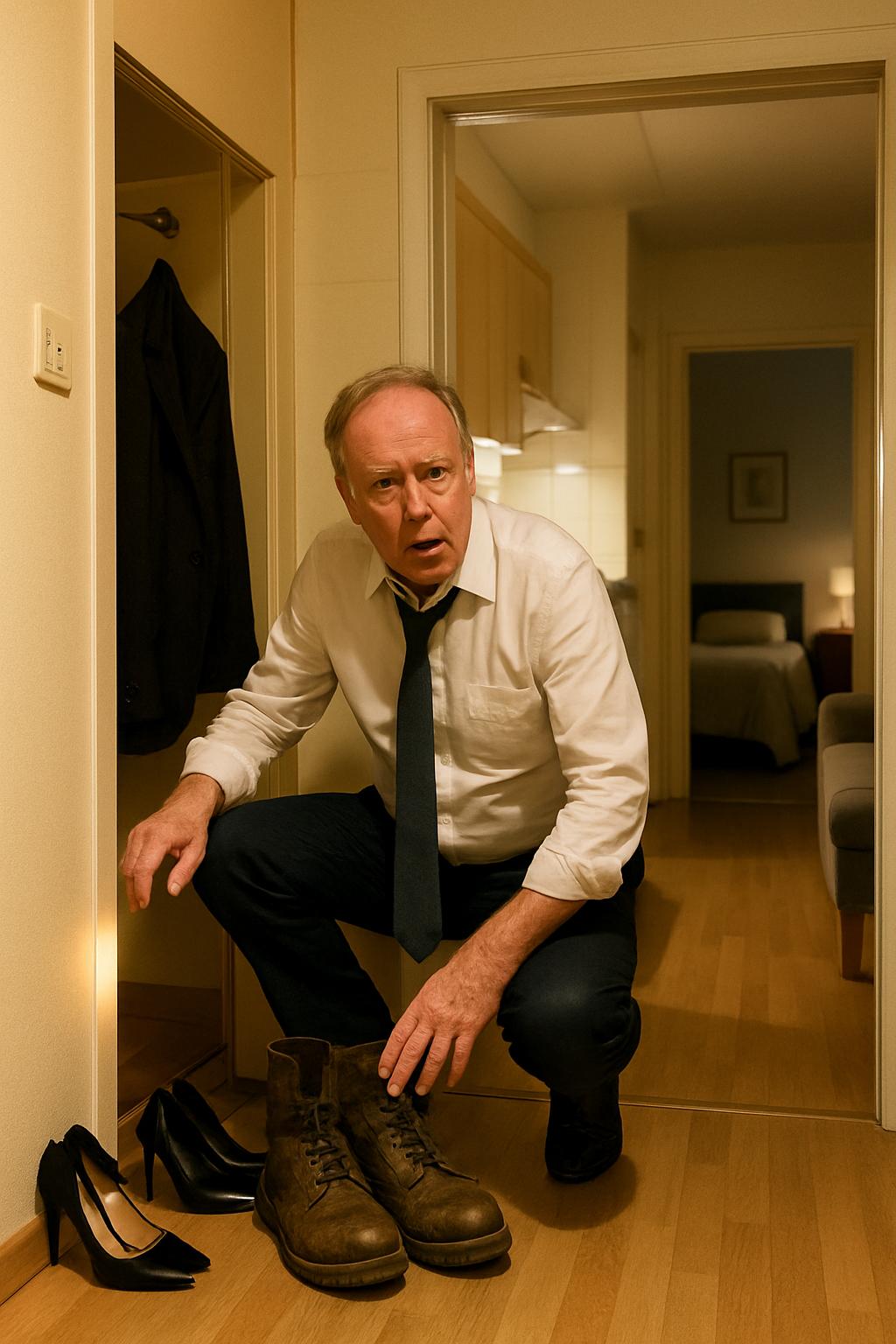 Përgjumja iu zhduk menjëherë. Me dorë të dridhur kërkoi çelësin e dritës dhe e ndezi. Ndriçimi i fortë pushtoi korridorin, duke ia hequr çdo dyshim: nuk kishte parë gabim. Çizmet — kafe, paksa të gërryera, qartazi të përdorura — ishin aty.