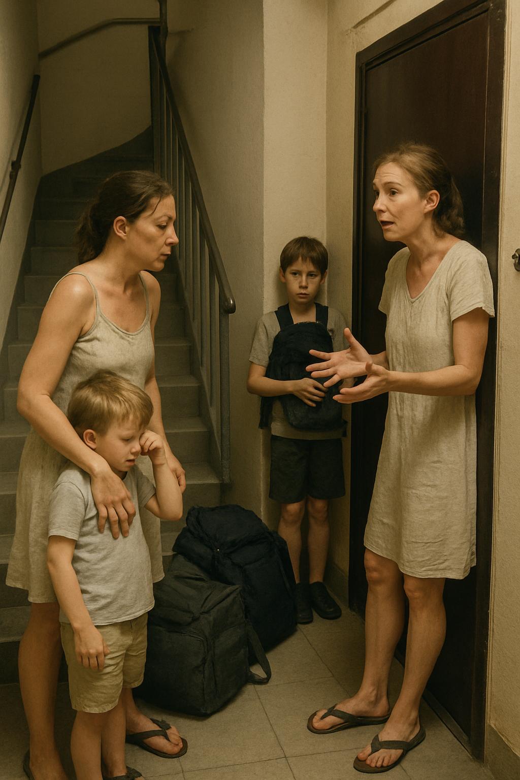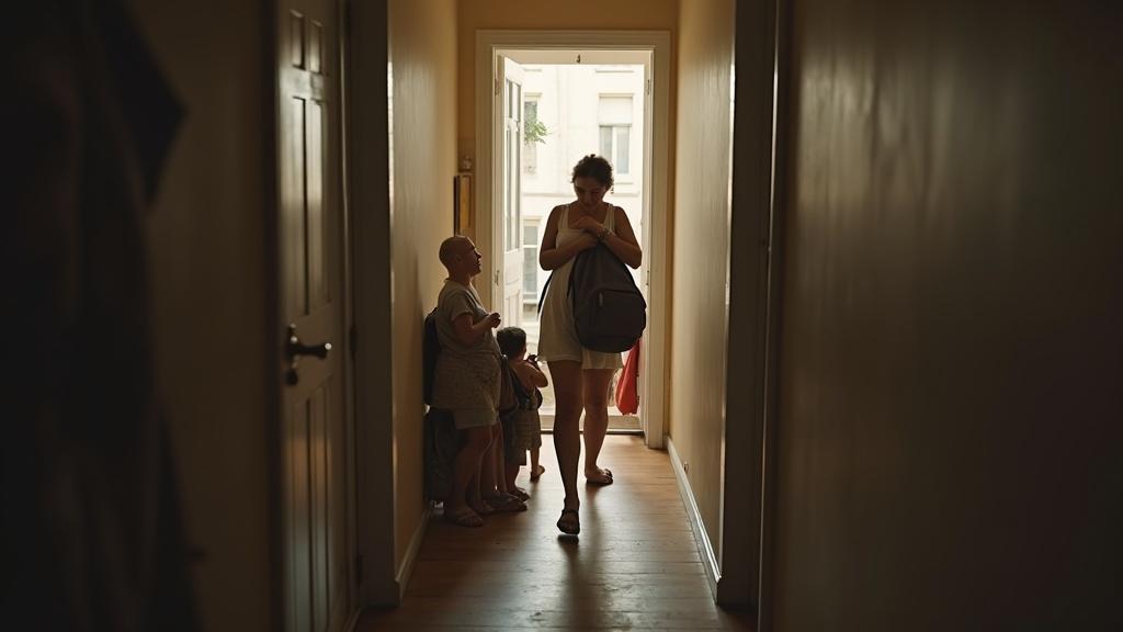 Përpara derës së saj qëndronte një grua. Pas saj ishin grumbulluar çanta të mëdha udhëtimi dhe disa qese, si të kishte ardhur drejt e nga një rrugë e gjatë. Vishte një fustan pambuku të zbehur nga dielli dhe në këmbë mbante shapka të konsumuara.