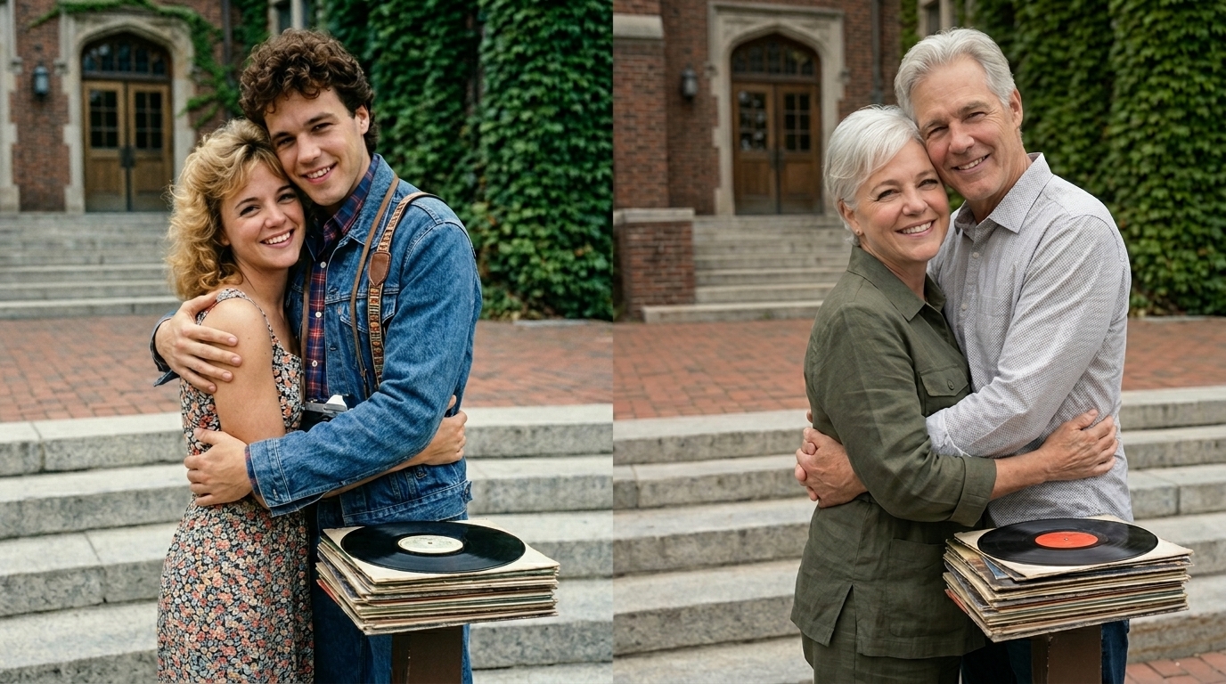 Në secilën prej tyre ishte Saimir Hasani — më i ri në moshë, por pa asnjë dyshim ai. I njëjti buzëqeshje e sigurt, i njëjti qëndrim trupor plot vetëbesim. Duart e futura në xhepa, një zakon që e ruante edhe sot.