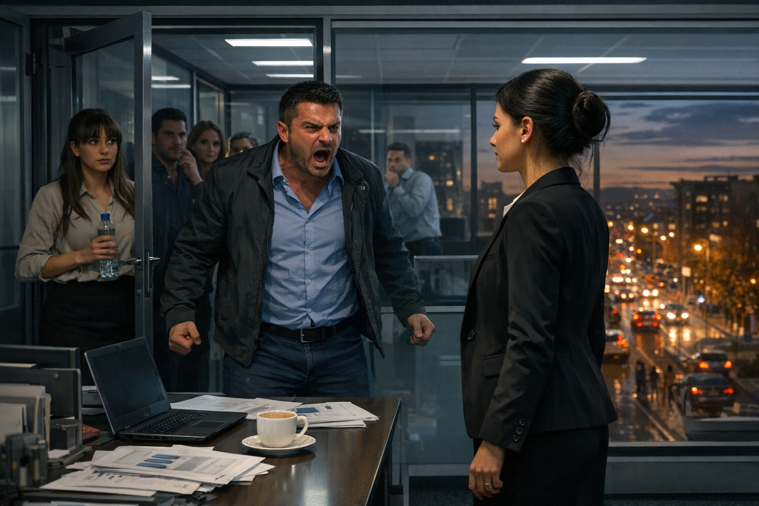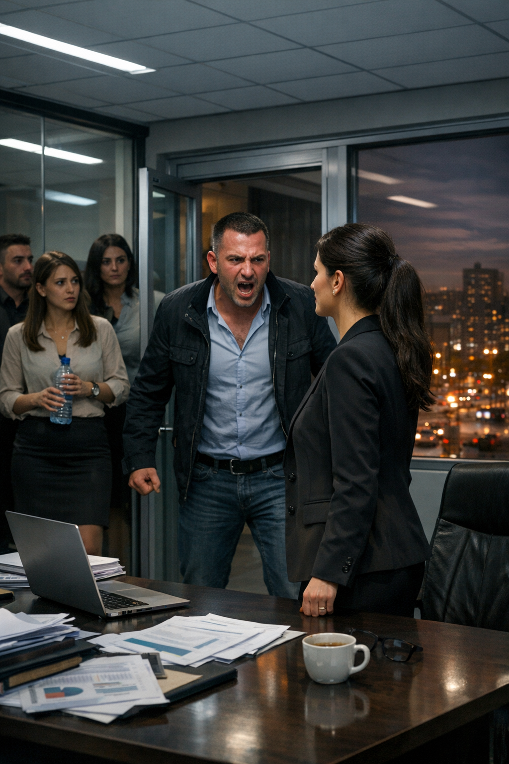 — Arben, të lutem, qetësohu, — foli ajo me zë të ulët, duke u përpjekur të ruante qetësinë. — Hajde të kalojmë në sallën e mbledhjeve dhe…